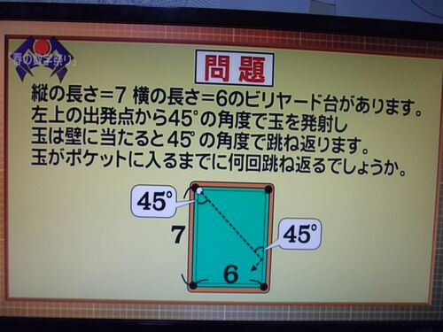 靴ひも問題 最初のやり取りでカンニングはダメと言う話が出ていたのに、問題を解いている途中でたけしが突然「腹が痛いからトイレに行く」と言って、帰ってくるとイアン・スチュアートのタネ本を抱えて戻ってきて、露骨にカンニングを始めたのには笑った。 …