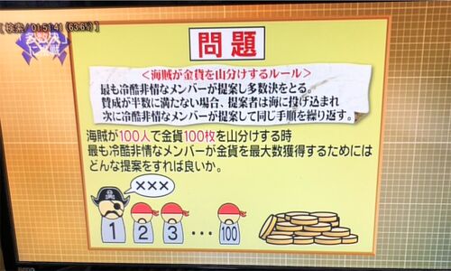 久々にコマネチ大学の問題の話題です。 当然のように東大の受験に合格すると言われる灘高校生が考え出した碁盤に石を置くゲームです。特許は取ってないそうなのでアプリゲーム化して世界進出で一攫千金も可能ではないと言っていました。ダンカンも必死にゲー…